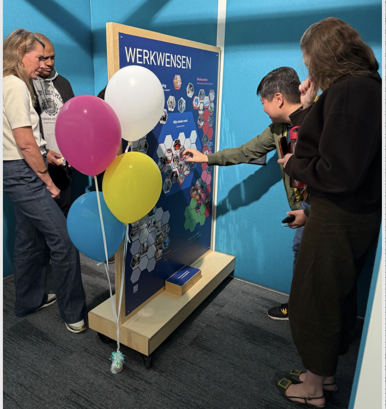 Bij een andere wand draait alles om ‘tijd’. Hoeveel tijd wil je besteden aan werk, en hoeveel aan je privéleven? Zo ontdek je spelenderwijs je ideale werk-privébalans.