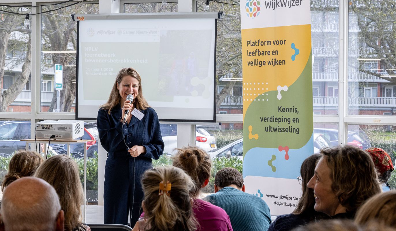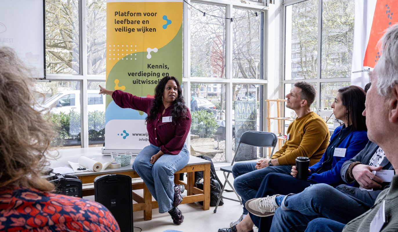 Sarah Faber van Wijkwijzer neemt het stokje over en benadrukt het belang van ontmoeting. “Praat met elkaar, leer van elkaar, ga de discussie aan, maar altijd met respect.” Ze licht het platform toe als plek waar kennis, ervaringen en instrumenten samenkomen om de leefbaarheid en veiligheid in kwetsbare wijken te verbeteren.