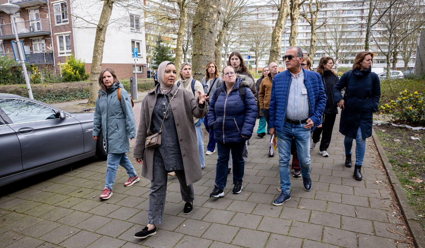 De wandeling is geen vrijblijvende excursie, maar een voortzetting van het gesprek. Over sloop en terugkeergarantie, over langer thuis wonen, over eigenaarschap. De discussies gaan door terwijl de tijd doortikt; de workshops beginnen later dan gepland.