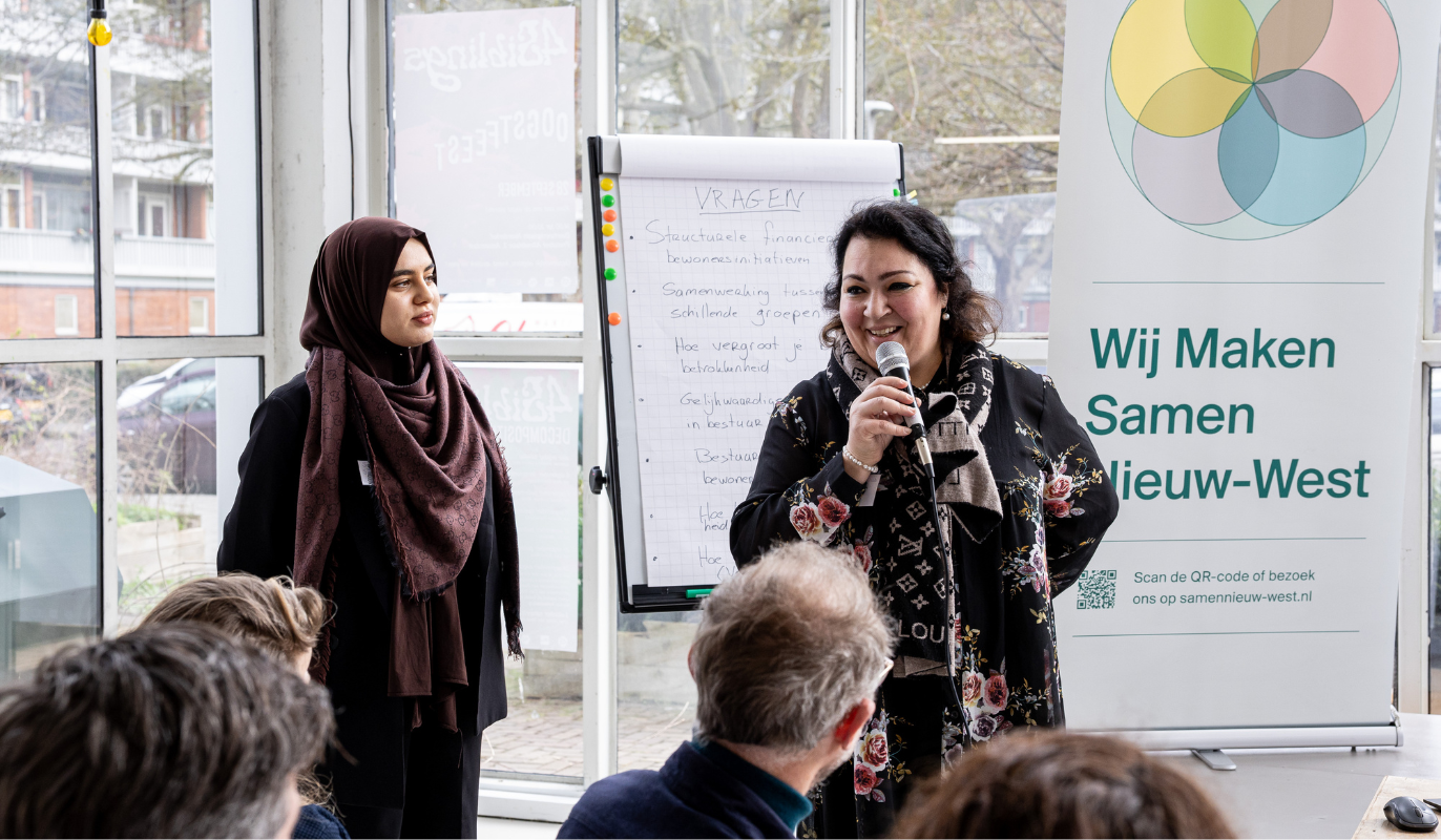 Wijkverbinders Saïda en Esmae vertellen hoe hun buurt kampte met vervuiling, overlast en slechte woningen. Saïda: “Mensen trokken zich terug op hun eigen eiland. Ook wij. Totdat we zagen dat er iets moest gebeuren, alleen al vanwege onze eigen kinderen.” Ze besloten in actie te komen, richtten een bewonersgroep op en gingen langs 650 deuren in de buurt. De respons overtrof alle verwachtingen: hun informatieavond trok geen vijftig, maar meer dan driehonderd bewoners.